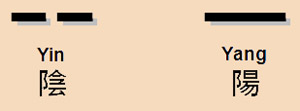 Ausgehend vom Yin und Yang Zeichen gibt es nun zwei Arten von Linien, die yang Linie, die durchgezogenen ist, und die yin Linie, die gebrochen ist.